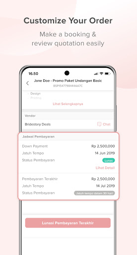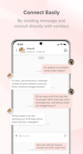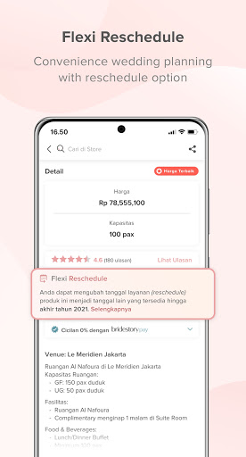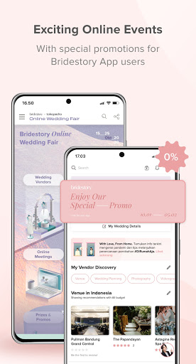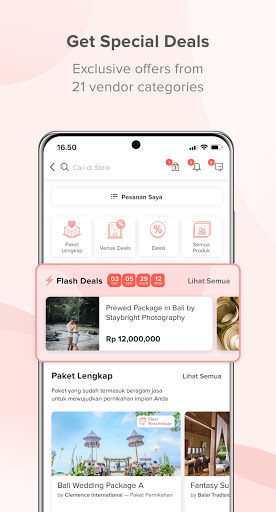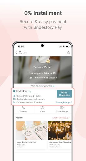 ในงานแต่งงานนี้คุณสามารถเรียกดูความคิดงานแต่งงานนับล้านและผู้ขายที่อยู่เบื้องหลังพวกเขา ส่งข้อความและเชื่อมต่อโดยตรงกับผู้ขายเพื่อเรียนรู้เพิ่มเติมเกี่ยวกับบริการจัดงานแต่งงานของพวกเขา ทำการจองและชำระเงินให้กับผู้ขายของคุณด้วยการจ่ายเงินล่วงหน้า รับและตรวจสอบใบเสนอราคาได้อย่างง่ายดายผ่านการแชทและอีเมล ค้นหาข้อเสนองานแต่งงานที่ดีที่สุดและโปรโมชั่นในฝ่ามือของคุณ นอกจากนี้คุณยังสามารถเพลิดเพลินกับตัวเลือกการกำหนดเวลาใหม่เพื่อการวางแผนงานแต่งงานที่สะดวกยิ่งขึ้น