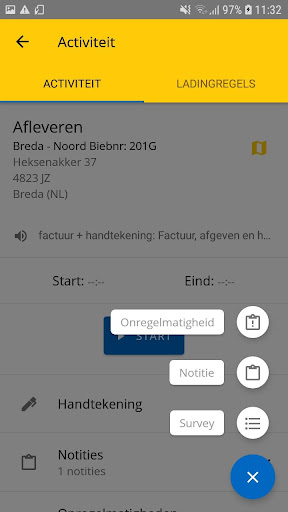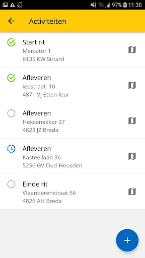 ในฐานะไดรเวอร์คุณเห็นภาพรวมของการเดินทางของคุณในแอพ จาก A ถึง B และกรอบเวลาที่สอดคล้องกัน แน่นอนรวมถึงรายการกิจกรรม: การจัดส่งการโหลดหรือการขนถ่าย คุณเห็นภาพรวมต่อกิจกรรมที่ทำงานเป็นนาฬิกาจับเวลา คลิกที่จุดเริ่มต้นและหยุดได้อย่างง่ายดายและเวลาจะลงทะเบียนโดยอัตโนมัติ ผ่านแอพบนสมาร์ทโฟนหรือแท็บเล็ตของคุณที่คุณสแกนบาร์โค้ดลงทะเบียนลายเซ็นเขียนความเสียหายหรือข้อบกพร่องเพิ่มรูปภาพของคุณและแน่นอนว่าคุณสามารถเปลี่ยนไปใช้ผู้วางแผนเส้นทางจากการวางแผนได้อย่างง่ายดาย หากจำเป็นให้โทรติดต่อลูกค้าโดยตรงจากแอพ กำหนดการสามารถวางโน้ตในแต่ละการนั่ง ตัวอย่างเช่นเมื่อลูกค้ายังคงต้องจ่าย แผนนี้ยังเห็นสิ่งที่คนขับบันทึกไว้ในแอพ Bumbal