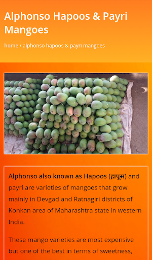 Alphonso ยังเป็นที่รู้จักกันในนาม Hapoos (हापूस) และ Payri เป็นมะม่วงพันธุ์ที่เติบโตส่วนใหญ่ในเขต Devgad และ Ratnagiri ของพื้นที่ Konkan ของรัฐมหาราษฏระในอินเดียตะวันตก