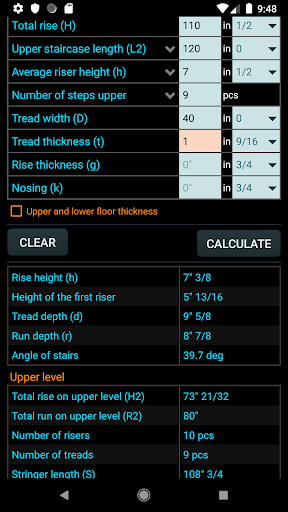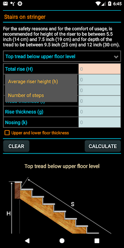 โดยใช้เครื่องคิดเลขบันไดแบบคลาสสิกความลึกความสูงเพิ่มขึ้นจำนวนขั้นตอนและมุมที่รวดเร็วและง่ายดาย