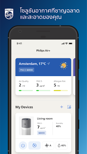 เมื่อใช้ร่วมกับอุปกรณ์ Philips Air ที่เชื่อมต่อของคุณ Air จะมอบประสบการณ์อันชาญฉลาดที่ช่วยให้คุณสูดอากาศที่สะอาดและดีต่อสุขภาพได้