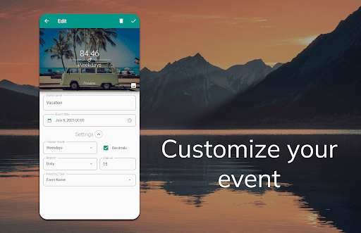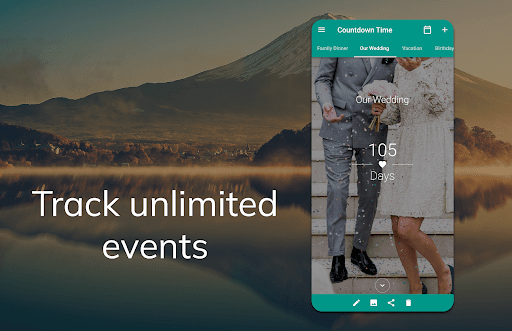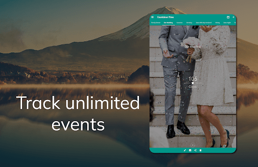 ไม่มีวันใหญ่หรือเล็กเกินไปถูกติดตามในแอพมันขึ้นอยู่กับคุณอย่างสมบูรณ์และสิ่งที่คุณต้องการให้เหตุการณ์สำคัญของคุณเป็นกำหนดวันที่ของคุณและให้เวลานับถอยหลังและวิดเจ็ตดูแลวันหยุดพักผ่อนวันหยุดหรือวันแต่งงาน