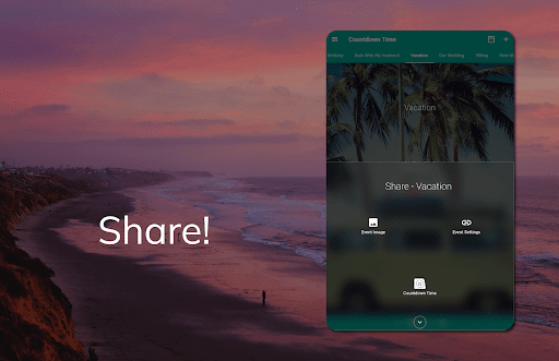 มีกิจกรรมที่คาดหวังมากที่สุดของคุณที่ปลายนิ้วของคุณด้วยเวลานับถอยหลังเหตุการณ์จะถูกติดตามไปยังครั้งที่สองแบบเรียลไทม์ด้วยความแม่นยำมีดโกนรู้สึกถึงความตื่นเต้นเมื่อวันนี้เข้ามาใกล้และแบ่งปันกับเพื่อนและครอบครัว