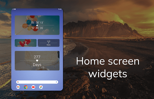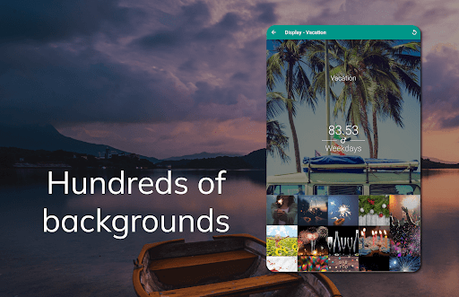 นับถอยหลังในวัน, การเต้นของหัวใจ, ปีและอื่น ๆ-เพียงแค่เลือกโหมดการแสดงผลที่เหมาะกับวันสำคัญของคุณแอพนี้มาพร้อมกับภูมิหลังที่น่าทึ่งที่เกิดขึ้นกับทุกโอกาส: ตั้งแต่วันแต่งงานและการเดินทาง