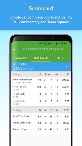 CricSync gives individual stats for all the players and detailed match scorecard.