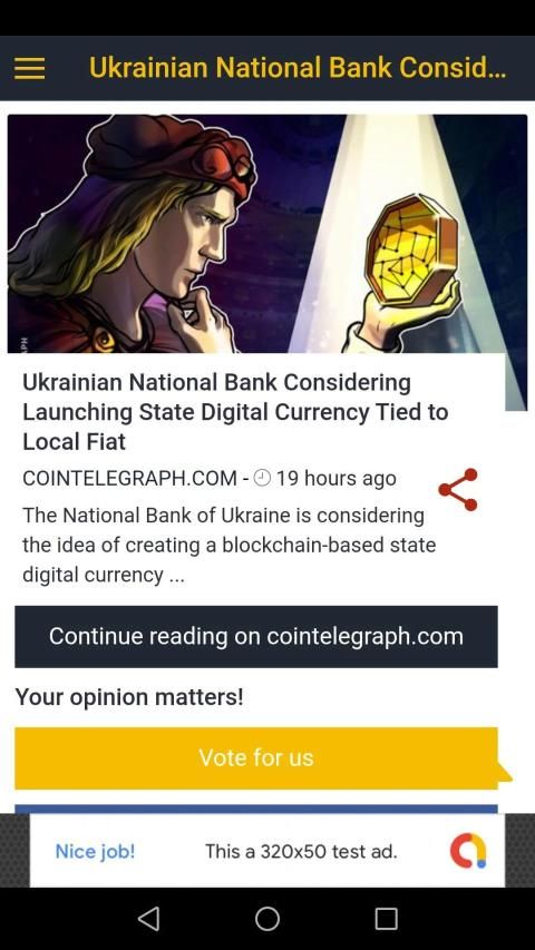 Crypto Coin News is a news aggregator (RSS). The app aggregates the most important and interesting news from relevant websites such as Cointelegraph, Coindesk, Forklog, Bit Media, Ccn, Ethnews, Blockchain Tech News, Bitnovosti, Criptonoticias, Infocoin, Placecrypto, Zdnet, Journalducoin, Cryptominando and many others.