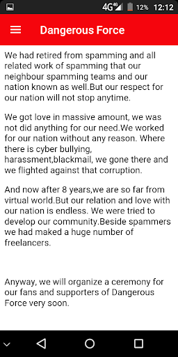 Dangerous Force is a Bangladeshi ethical Hacking team.It was founded on 20th Jun 2012.In 2011 foreign countries hackers and spammers was attacking on our social meadia's accounts and profile's.Than a sunny generation of our motherland, ,was felt for need a team, which will be protect our cyberspace from this types of social media attack.After on year his operation was succeeded and fulfilled,, he was success to make a team for protecting our cyberspace. And that was DANGEROUS FORCE