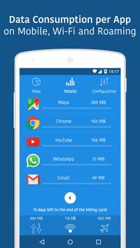• Monitor your data usage on mobile, wi-fi and roaming.