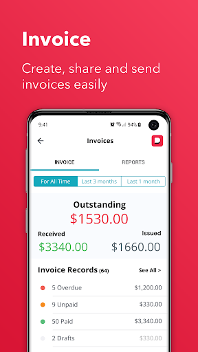 เรียกเก็บเงินและส่งที่จำเป็น ตั๋วเงินและการประมาณการอย่างรวดเร็ว นอกจากนี้คุณยังสามารถแปลงสิ่งเหล่านี้เป็นใบแจ้งหนี้ที่เรียบง่ายด้วยการแตะเพียงปุ่มเดียว