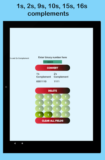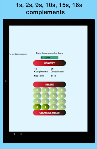15s และ 16s เติมเต็ม "แอพนี้ยังมีเครื่องมือเครื่องคิดเลขที่ออกแบบที่ดีที่สุดซึ่งรวมถึง: Converter Number-Binary Hexa เลขฐานไบนารี Hexa