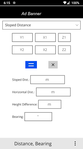 - Sloped distance; calculates between two points as