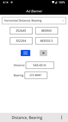 - Horizontal distance; calculates between two points as horizontal distance and also bearing angle as degree or grad ( between two X,Y coordinates)