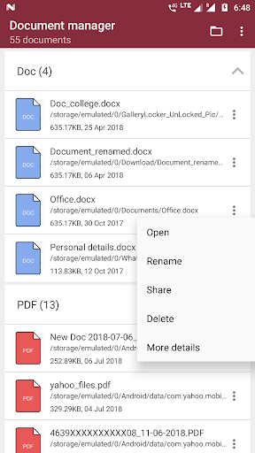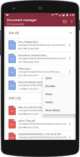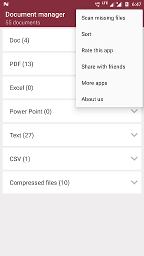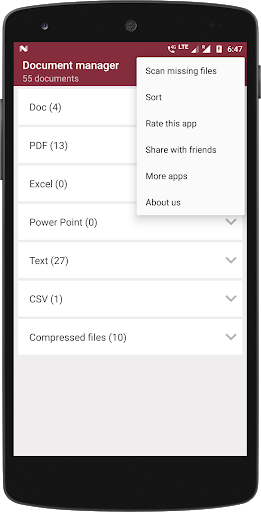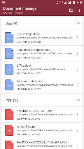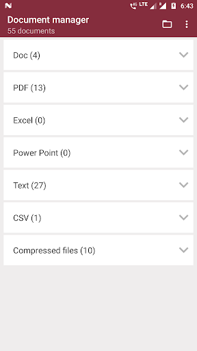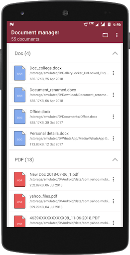จัดหมวดหมู่รายการเอกสารเหล่านี้ในไฟล์ PDF, เอกสารข้อความ, คำ, excel, ไฟล์ zip และ powerpoint ฟรี - รับรายการเอกสารทั้งหมดที่มีอยู่ในสมาร์ทโฟนของคุณภายใต้หลังคาเดียวกัน