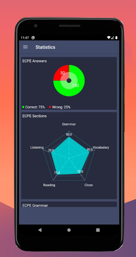 แอพนี้ช่วยให้คุณเรียนรู้แนวคิดที่สำคัญที่ผ่านการทดสอบบน ECCE (การตรวจสอบใบรับรองความสามารถเป็นภาษาอังกฤษ) และ ECPE (การตรวจสอบใบรับรองความสามารถในการใช้ภาษาอังกฤษ) ด้วยคำถามที่ต้องการในขณะที่คุณฝึกคำถามแอพจะติดตามประสิทธิภาพของคุณและเน้นความแข็งแกร่งการทดสอบของคุณและจุดอ่อนช่วยให้คุณมุ่งเน้นไปที่แต่ละส่วนส่วนบุคคล