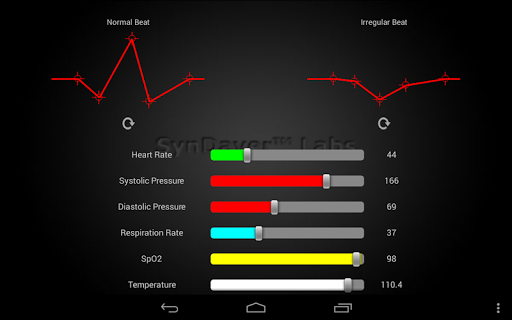 ตัวแปรที่สามารถตั้งค่าได้รวมถึงการเต้นต่อนาทีความดัน Systolic ความดัน Diastolic อัตราการหายใจ SpO2 และอุณหภูมิค่าเหล่านี้จะแสดงทั้งแบบตัวเลขและการประสานงานสีแบบไดนามิกด้วยตัวบ่งชี้เสียงแบบไม่ต่อเนื่องสำหรับอัตราการเต้นของหัวใจ