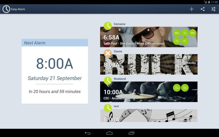 - Create or modify alarms directly from the official Youtube application by using the share button, or use Easy Alarm built-in video picker
