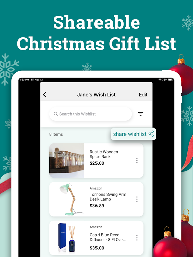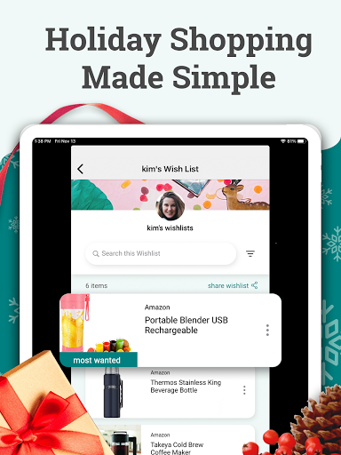 ฤดูช็อปปิ้งคริสต์มาสกลับมาแล้ว! ดาวน์โหลดแอปการแชร์รายการที่ต้องการ # 1 สำหรับรายการของขวัญการแลกเปลี่ยนของขวัญ Secret Santa, การลงทะเบียนงานแต่งงาน, รายการอวยพรวันเกิดและอื่น ๆ !