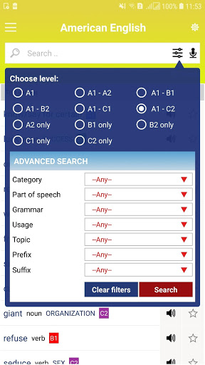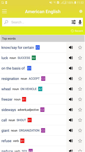 แอพแบบโต้ตอบนี้มีโปรไฟล์คำศัพท์ภาษาอังกฤษที่ครอบคลุม - อเมริกันพร้อมด้วยคำพูด รายละเอียดคำศัพท์ภาษาอังกฤษในภาษาอังกฤษแบบอเมริกันซึ่งคำและวลีที่ผู้เรียนทั่วโลกรู้ในแต่ละระดับ - A1 ถึง C2 - ของ CEFR