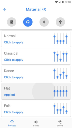 This equalizer taps into the power of the Android framework and changes the sound signature. Based on the MusicFX app from Qualcomm.