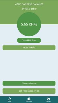 Earn free Ethereum simply by trying open the app and start mining or watching a short video!