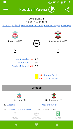 With Football Arena push alerts you will never miss a goal of your team! Leagues wide push notifications for each goal includes the free services of this new app. In the game details, there is then also the scorers and live table.