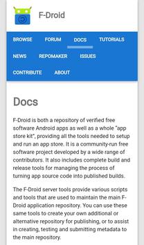 F-Droid is an installable catalogue of FOSS (Free and Open Source Software) applications for the Android platform. The client makes it easy to browse, install, and keep track of updates on your device