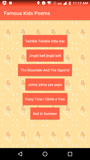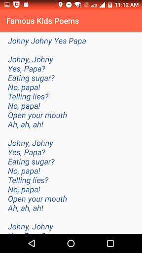 แอปพลิเคชันนี้เข้าถึงบทกวีทั้งหมดโดยตรงเพียงคลิกเดียวแอปพลิเคชั่นนี้ฟรีและไม่จำเป็นต้องใช้อินเทอร์เน็ตมันมีบทกวีที่มีชื่อเสียงตลอดกาลสำหรับเด็ก ๆคุณสมบัติของแอป: