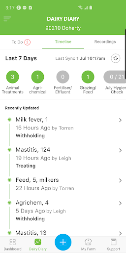 Dairy Diary เป็นวิธีที่รวดเร็วที่สุดในการบันทึกการรักษาสัตว์อาหารฟีปปุ๋ยและน้ำทิ้งการฉีดพ่น Agrichemical การแทะเล็มและสุขอนามัยรายเดือน
