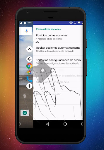 การกระทำด้านข้างช่วยให้คุณสามารถดำเนินการฟังก์ชั่นหลักด้วยมือเดียวปรับปรุงความสะดวกในการเข้าถึงและในกรณีที่ปุ่มทางกายภาพ (ปุ่มแทบจะไม่) ล้มเหลวด้วยฟังก์ชั่นนี้เราจะแทนที่ได้อย่างสมบูรณ์