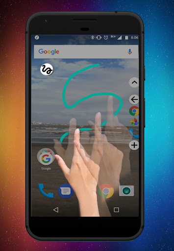 ในแถบด้านข้าง ( แถบด้านข้าง) เรามีปุ่มเพื่อเริ่มการตรวจจับท่าทางและยังมีปุ่มลอยเพื่อดำเนินการด้วยท่าทาง- Android.permision.internet