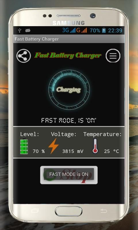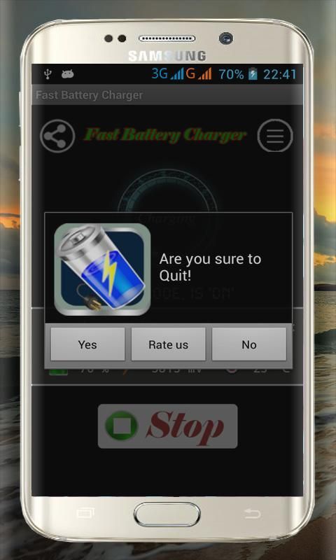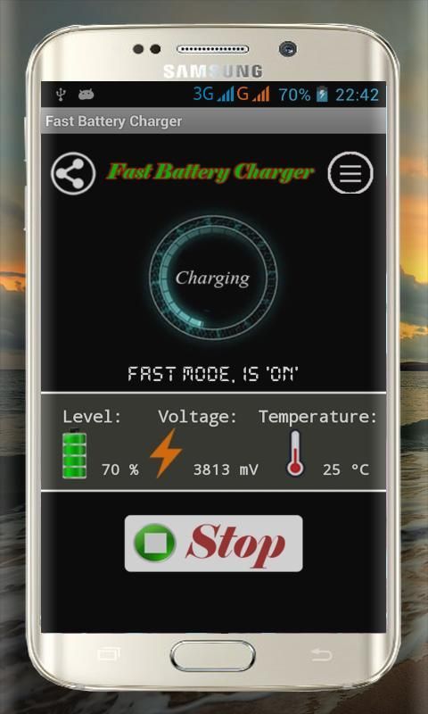 Fast battery charger works in fast mode when you click start, super charger kills all the background processes which consume battery hence your charging is boosted, a real RAM cleaner while charging. Fast charger also reduce brightness to minimum and show alert for closing data connection if it is on while charging. When you click stop or quit, all the processes will resume automatically. Fast battery charger reduce charging time almost 30-40% just by single button when you plug in mobile charger. Super charger automatically awaken when you plug in charger, click start to speed up the charging process and at any level you can click stop to resume all the signals. Super speedy charger not only improves charging time but also extends your battery time.