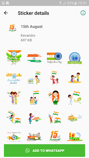 สติกเกอร์เทศกาลฮินดูเกือบทั้งหมดเกือบทั้งหมดใช้ได้ในขณะนี้.Happy Independent Day Stickers มีให้ตอนนี้ตอนนี้คุณสามารถส่งสติกเกอร์ 15 สิงหาคมใน whatsapp ของคุณกับเพื่อนและครอบครัวของคุณ