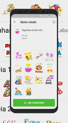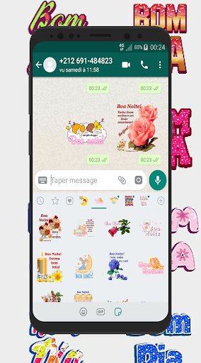 Contêm figurinhas para utilizar no seu dia a dia, tais como bom dia, boa tarde e boa noite, Oi, como vai? e Feliz Aniversário para compartilhar via WhatsApp com os seus amigos e familiares. Diversas figurinhas lindas para transmitir suas ideias e desejos no chat de sua rede social