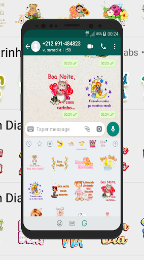 Na aplicação Sticker de bom dia boa tarde e boa noite mais de 100 adesivos. E depois para discutir mais com seus amigos ou entes queridos.