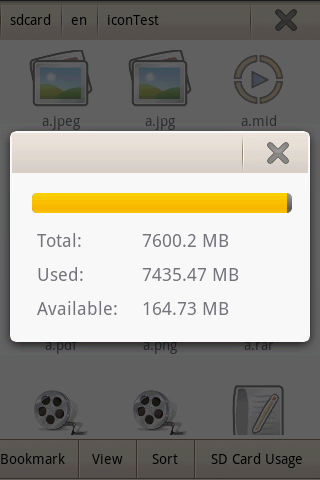 This application helps you browse and manage files in SDCard easily. features:MultiselectCopy,Cut,Paste,DeleteZip,UnzipExtractThumbnail previews for image filesView file PropertiesFile detailsOpen,Rename,New FolderShare amp SendCreate shortcut on homeCreate bookmarkSD Card UsageEasy to use, simpleSupport QVGAThanksKW: file manager file explorer file browser sdcard manager root explorer astro ES