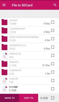 This application Files To SD Card is a one click to move your files from internal memory to SD card in your phone. You can move your photos, videos and other downloads to your SD card.