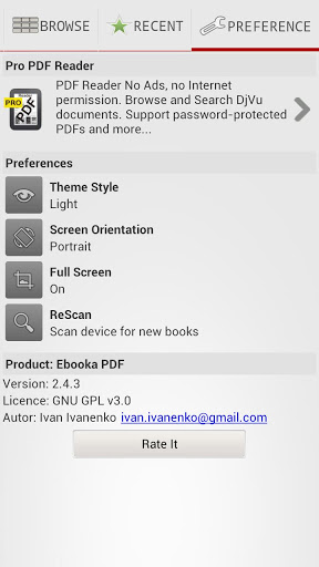 First PDF reader for documents and books.Support Android 1.6 and moreIt39;s designed for old phones, some pdf format may not supported. Rendering not require more CPU. For new devices try booka or PDF reader.First PDFyou can read books comfortablyFeatures:Correct Fonts, simple gui elementsSupports Nook Reader keyboards configuredScroll pages by tap on the screenScroll pages by volume keys configuredFixate pages by widthScan device for new booksDouble tap to hide show gui elements