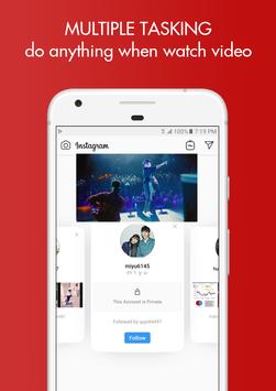 Listen to the musics and watch videos from Youtube player in a small screen while you're working, chatting and navigating in another screen. Videos are played when you are at main screen, Whatsapp, Facebook App etc...