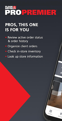 You can manage everything you need for your jobs. With the PRO Premier app from Floor & Decor, you can view your orders, download receipts, check in-store inventory and locate stores.