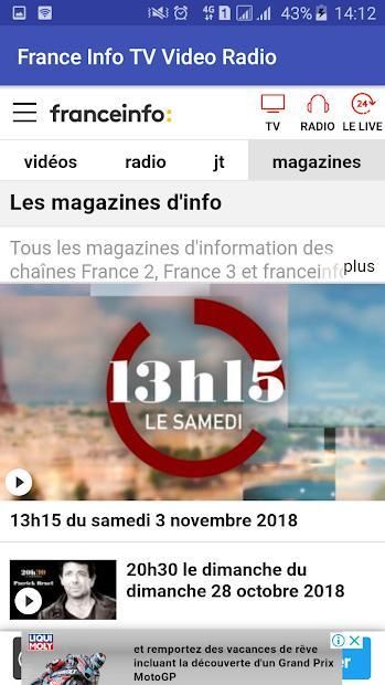 Découvrez l'application france info TV, l’offre d’information gratuite en continu sur votre mobile .