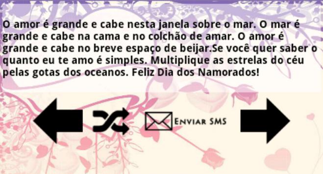 Com este aplicativo você terá acesso a muitas frases românticas e poderá envia-las para seu amado(a) demonstrando todo o seu amor, seja no dia a dia ou no dia dos namorados nunca deixe de demonstrar o seu afeto e dizer o quanto você ama a pessoa que esta ao seu lado.