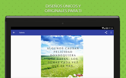 เรารับประกันว่ารูปภาพและวลีของเราเป็นของแท้ 100% คุณภาพที่ยอดเยี่ยมและความละเอียดดังนั้นคุณสามารถอัปเดตอุปกรณ์ของคุณ เครือข่ายสังคมโปรไฟล์หรือผนังทุกครั้งที่คุณต้องการรวมถึงแบ่งปันและแพร่กระจายด้วยมิตรภาพและการติดต่อเพื่อทำให้พวกเขาประหลาดใจด้วยรายละเอียดที่น่าจดจำเมื่อคุณต้องการขอบคุณแกลเลอรี่วลีที่กว้างขวางและหลากหลายของเราขอบคุณที่เราได้สร้างขึ้นสำหรับคุณเพียง คลิกเดียว โปรดจำไว้ว่าแอปของเราฟรีทั้งหมดดังนั้นคุณสามารถดาวน์โหลดได้ทุกครั้งที่คุณต้องการ