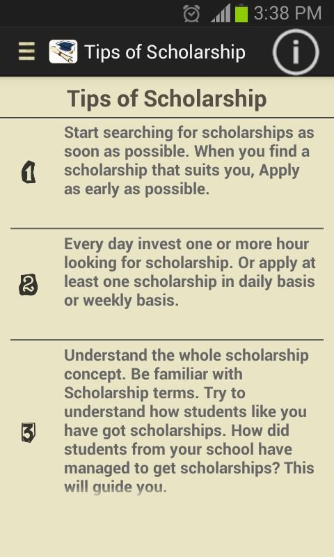 Hundreds of thousands of scholarships from several sponsors are awarded each year which worth more than $3.4 billion as some sources. However finding scholarship is a process that requires a good research and commitment. Almost all scholarships are listed in the internet. There are several free scholarship databases available online. In this App we have added key and important website address so that students will find out more by themselves.