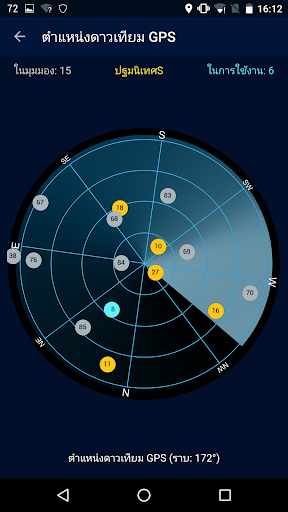 - ตำแหน่งดาวเทียมในท้องฟ้า (ดาวเทียม GPS ตำแหน่งแผนภาพ) แสดงบนเข็มทิศหมุน