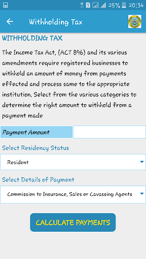 แอพนี้ให้คุณเข้าใจระบบภาษีอย่างเต็มที่ในสภาพแวดล้อมของกานามันได้รับการพัฒนาเพื่อช่วยเหลือนักศึกษาภาษีในประเทศช่วยเหลือคนงานแต่ละคนในการกำหนดมูลค่าที่แท้จริงของการจ่ายเงินสุทธิของพวกเขาและทำให้การทำงานของเจ้าหน้าที่ภาษีง่ายขึ้นในการยืนยันคุณค่าที่นำเสนอโดยผู้เสียภาษี
