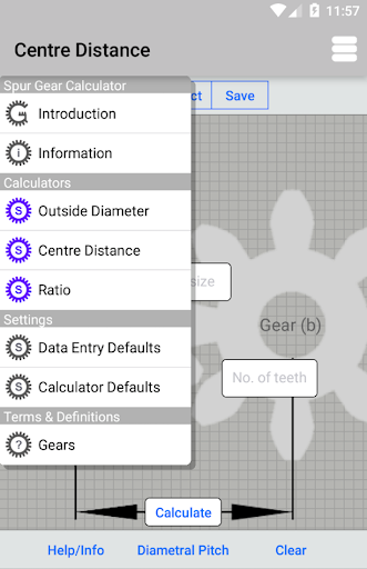 The input data for all the calculators can be saved for later use. Along with the option to preset the Gear System, Tooth Size and Number of Teeth. Access to both the preset data and persistent data is via the top toolbar in the individual calculator.
