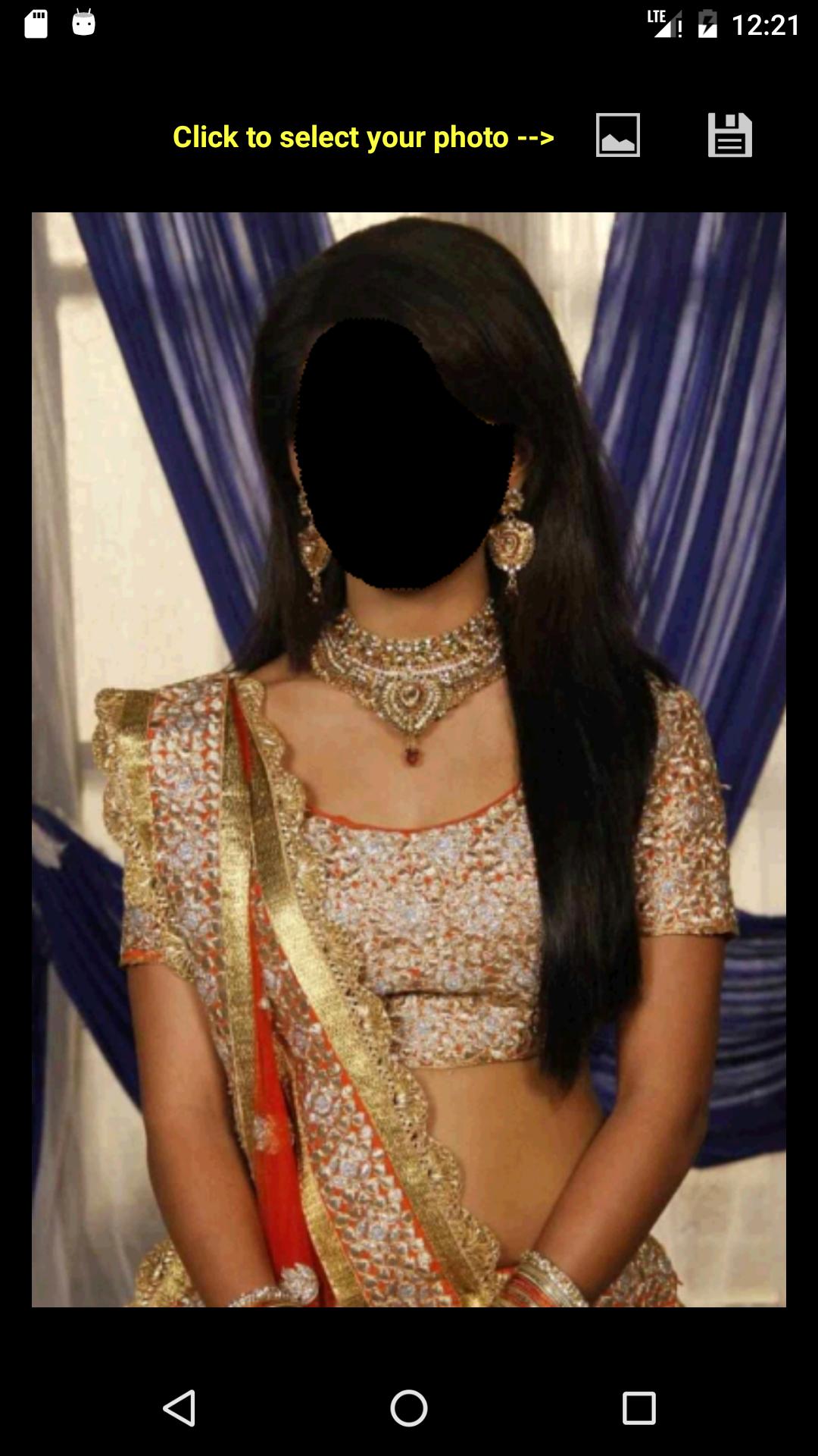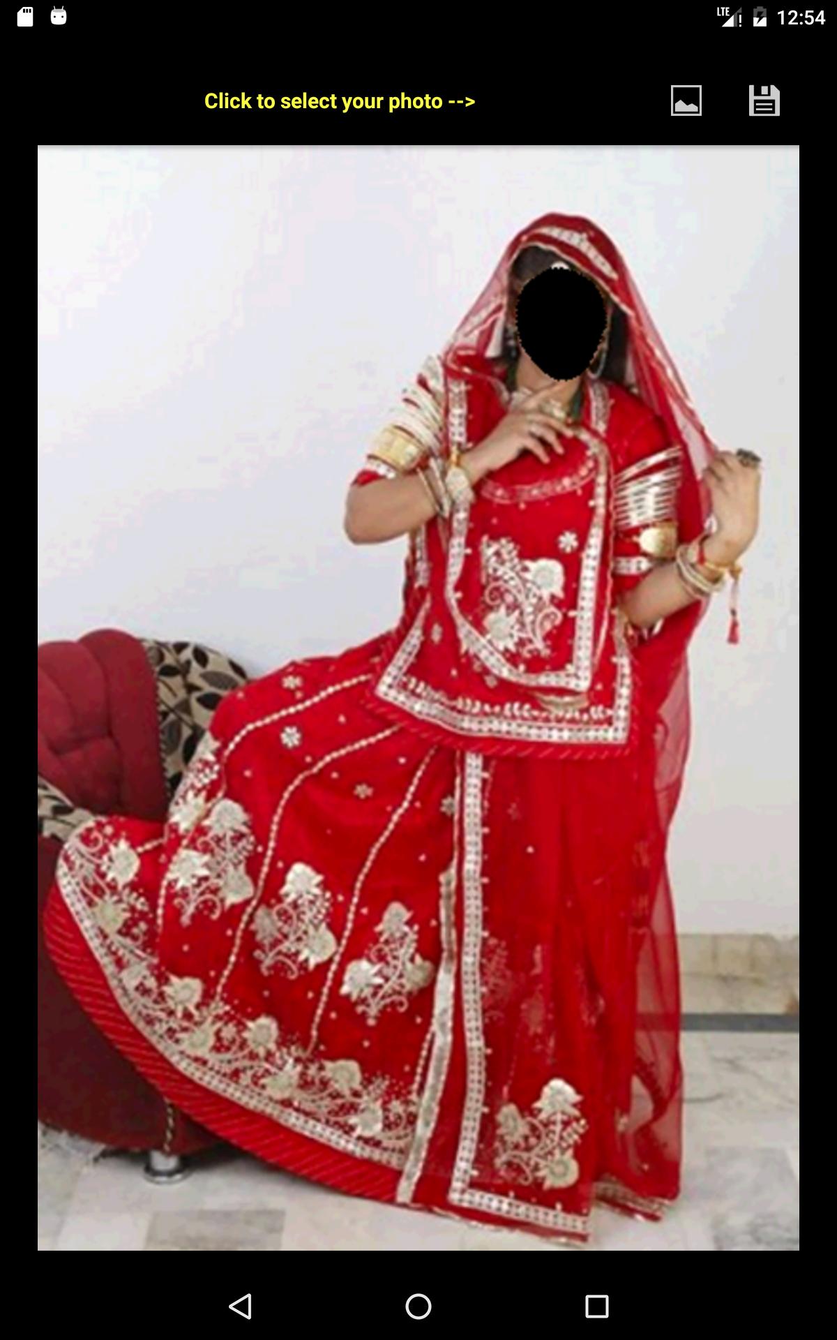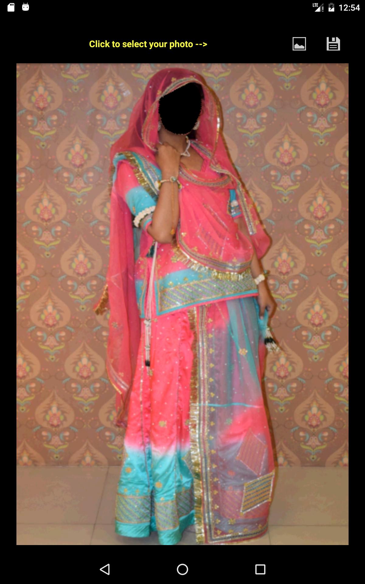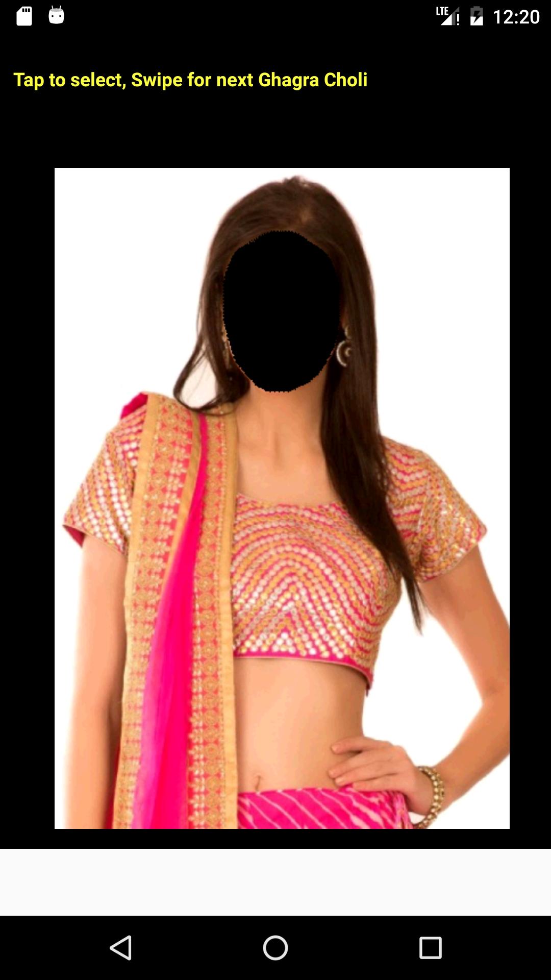 Select a Ghagra Choli, select your photo from gallery, adjust your face and save. Done!
