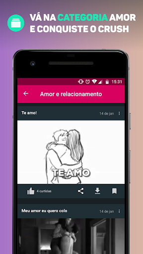 3. Categorias: Amor e relacionamento, Mensagens para whatsapp, Zueiras e pegadinhas, Fofuras e Reações são as mais visitadas.