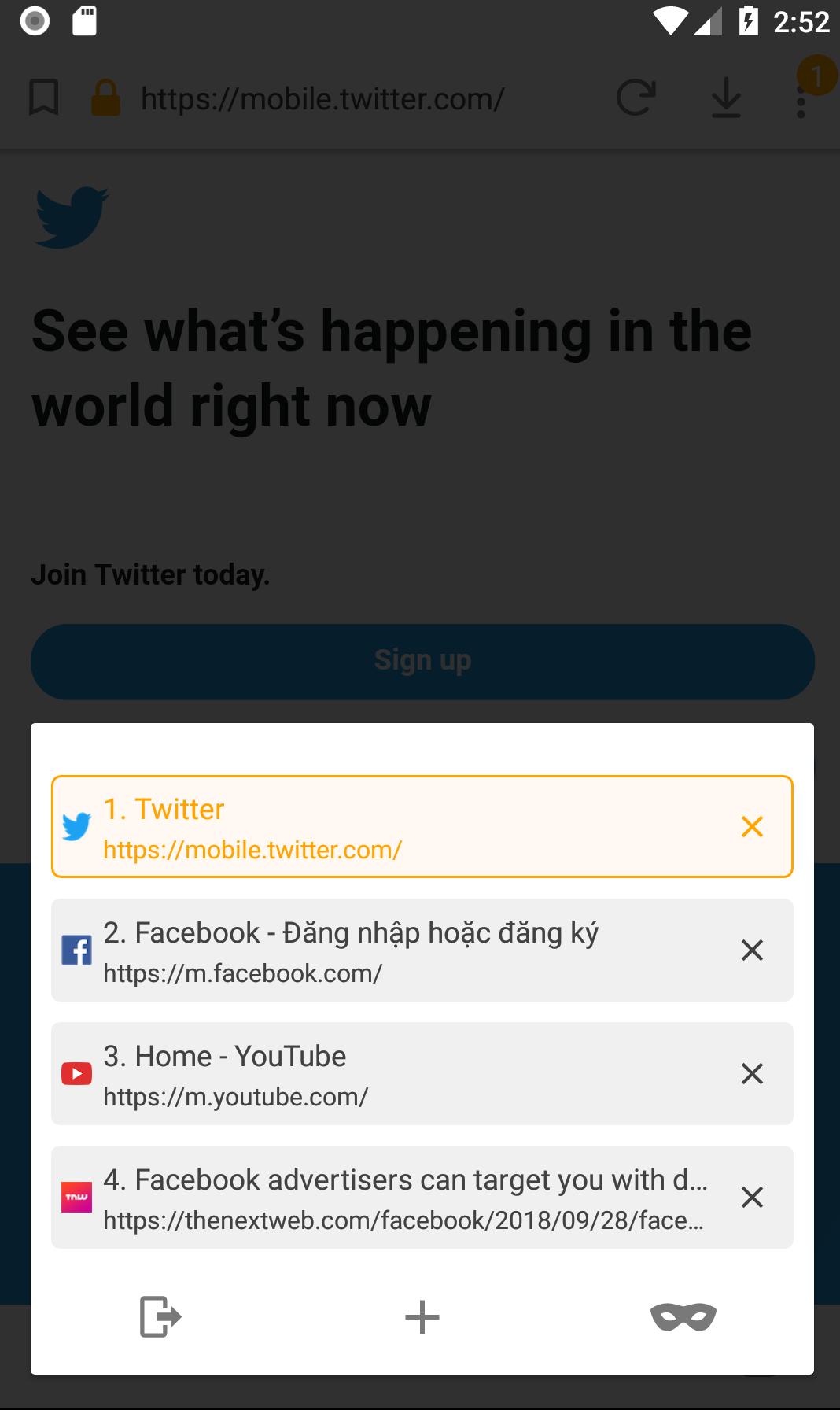 • Go Browser supports multi-tabs but it does not make app to requires more memory, even open 100 or 200 tabs at the same time.