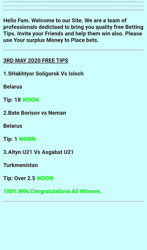 This Master App Provides you with the best analyzed (Both Teams To Score) GG predictions . Also we reinforce these tips with well sourced Over 2.5&3.5 prognosis. Welcome and bet With Us.